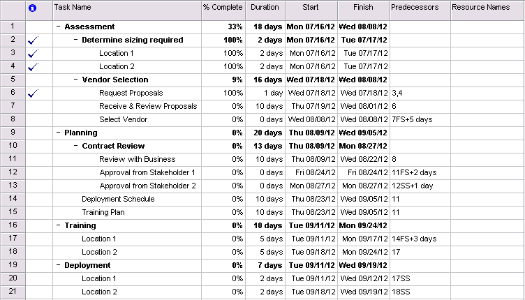 MS Project Gantt Chart